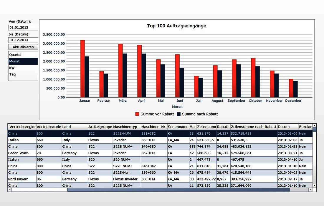 Mit der voll integrierten Berichtssoftware SAP Crystal Reports können aussagekräftige und optisch ansprechende Berichte, die Einblick in alle Bereiche des Unternehmens eröffnen, erstellt werden. Führungskräfte sehen genau, wie sich Umsätze, Kosten und Cashflow entwickeln und können so die Geschäftsentwicklung richtig bewerten und schnell und fundiert entscheiden. Dieses Business Intelligence Tool (BI) bietet interaktive Berichte und Dashboards, sowie leistungsstarke Datenvisualisierung.